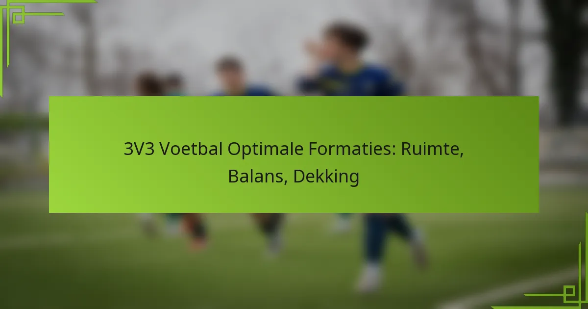 Optimale formaties voor 3v3 voetbal richten zich op ruimte, balans en dekking om de teamperformantie te verbeteren. Veelvoorkomende formaties zijn de 1-1-1, 2-1 en 1-2 opstellingen, die elk unieke voordelen en uitdagingen bieden op basis van de vaardigheden van de spelers en spelsituaties.